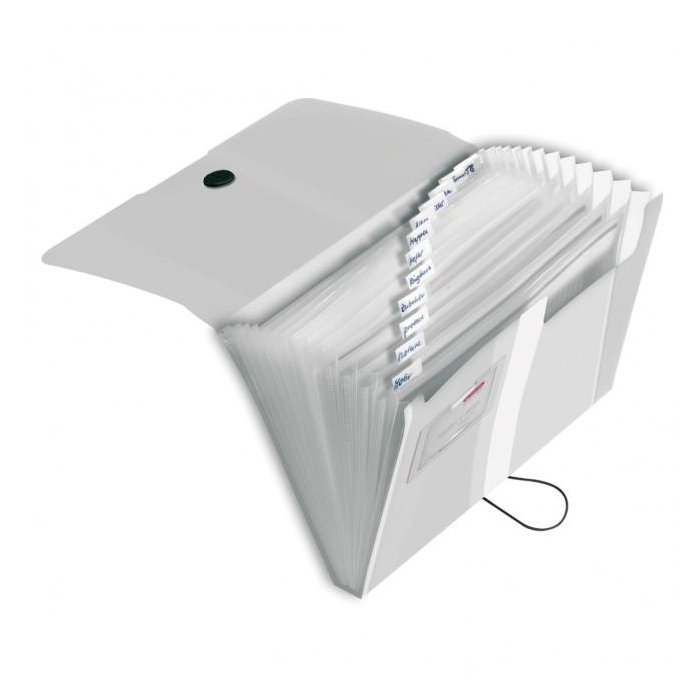 Plastová aktovka produktového radu Easy Orga s 12 plastovými priehradkami s indexami a malou priehradkou vizitkového formátu. Kapacita 300 listov. Uzatváranie gumičkou o plastový krúžok. Väčšie balenie 10 ks. Farba číra.