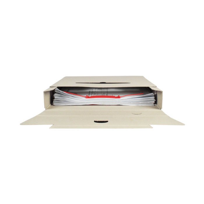 Ekologický výrobok. Box z recyklovateľnej špeciálne impregnovanej lepenky odolnej voči atmosferickej vlhkosti na dlhodobé uloženie záznamov. Tri varianty postavenia, kvalitná sieťotlač. Vhodný v kombinácii so skupinovým boxom. Väčšie balenie 25 ks. Rozmery (š x v x d) 50 x 330 x 260 mm.