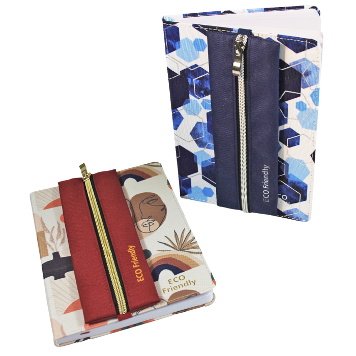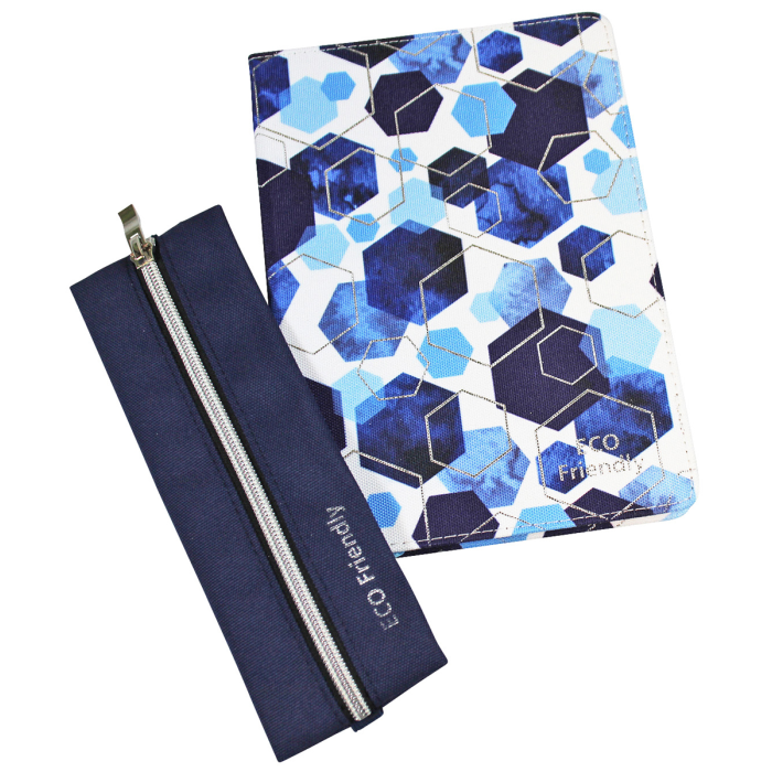 Blok má približne formát A5 so samostatným puzdrom na perá, obal a peračník z recyklovaného PET, 96 listov, papier 70 g/m², bodkovaná mriežka.