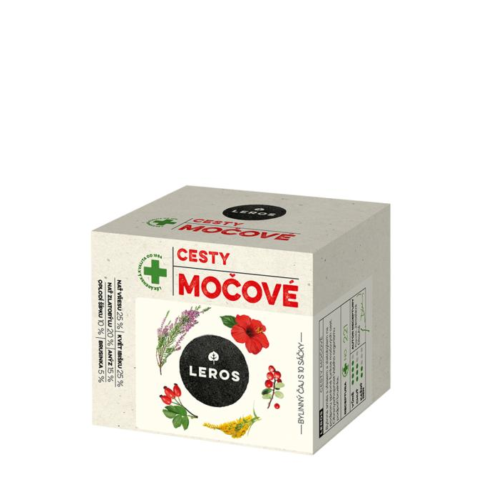 Bylinný čaj Močové cesty značky Leros predstavuje prípravok na podporu správnej funkcie močových ciest. Obsiahnutá brusnica podporuje prirodzenú obranyschopnosť organizmu. Bohatá zmes bylín je kombináciou vňate vresu, kvetu ibišteka, zlatobyle, aromatického anízu, šípok a brusnice. Čaj poskytuje intenzívnu vôňu, chuť a pôžitok na každý deň. Bylinná kúra môže byť pre váš organizmus očisťujúca a povzbudzujúca. Nájdite si čas na seba a v pokoji si vychutnajte šálku čaju Leros!