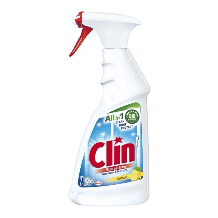Prostriedok na umývanie okien vo fľaši s rozprašovačom. Dočasne maskuje mikro-škrabance na skle (podľa záťazového testu v laboratóriu). Nastriekajte Clin priamo na čistený povrch a zotrite suchou handričkou. Objem 500 ml.