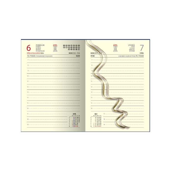 Obľúbený denný diár s prehľadným kalendáriom na každý deň. Diár je v pevnej väzbe s prednou penovou doskou, jednoduchý dizajn dopĺňa strieborná razba roku. Obsahuje slovenské kalendárium.