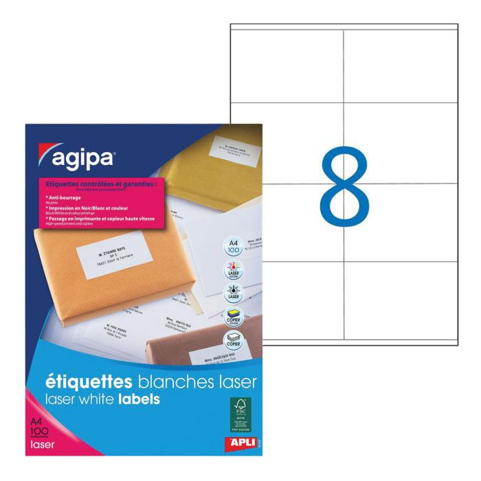 Etikety laser 105x72mm Agipa A4 100 hárkov