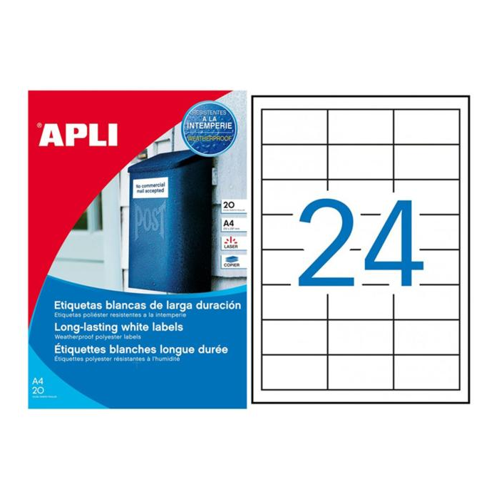 Etikety polyesterové 64,6x33,8mm APLI 20 hárkov