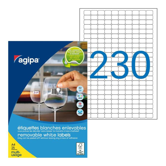 Etikety univerzálne odnímateľné 18x12mm Agipa A4 25 hárkov