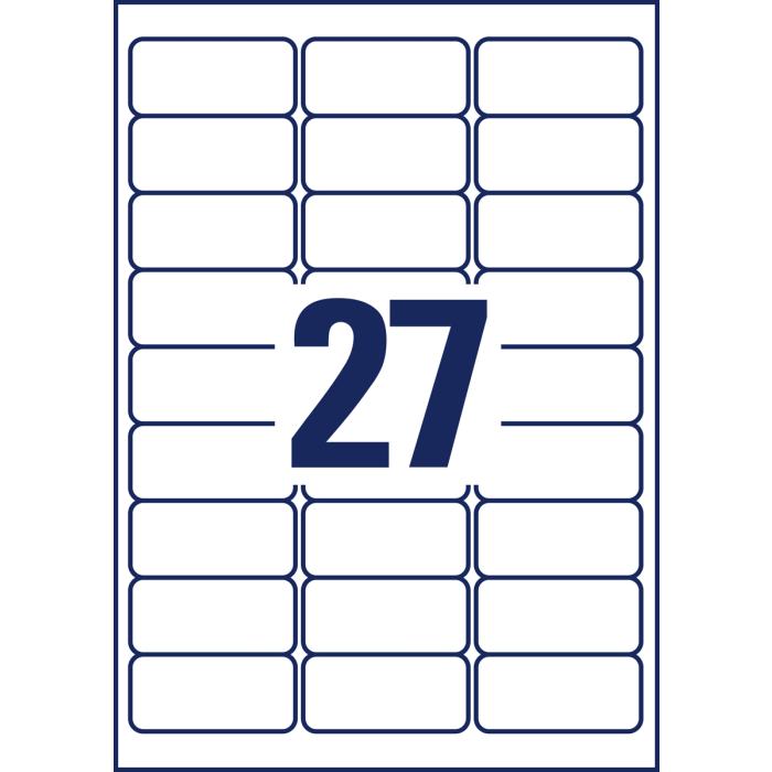 Odnímateľné samolepiace etikety odlepiteľné a znovu prelepiteľné (na bežnom povrchu až 5×) bez toho, aby zanechali stopy lepidla. Sú vhodné pre všetky druhy tlačiarní a kopíriek. Využiteľné najmä na každodenné pracovné činnosti, ako napr. vytváranie popisov, cenoviek, označovanie výrobkov, majetku a pod. Šablóny a softvér pre jednoduchú a rýchlu tlač etikiet k dispozícii zdarma. Rozmery v mm : 63,5 × 29,6. Farba biela. Etikety na hárku 27 ks. Balenie 25+5 hárkov.