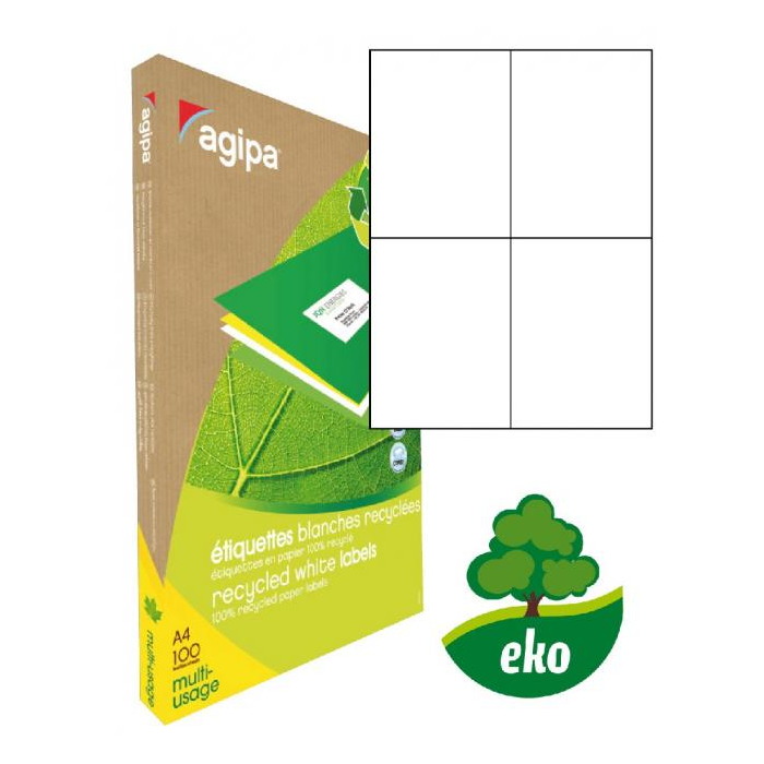Etikety univerzálne recyklované 105x148,5mm Agipa A4 100 hárkov