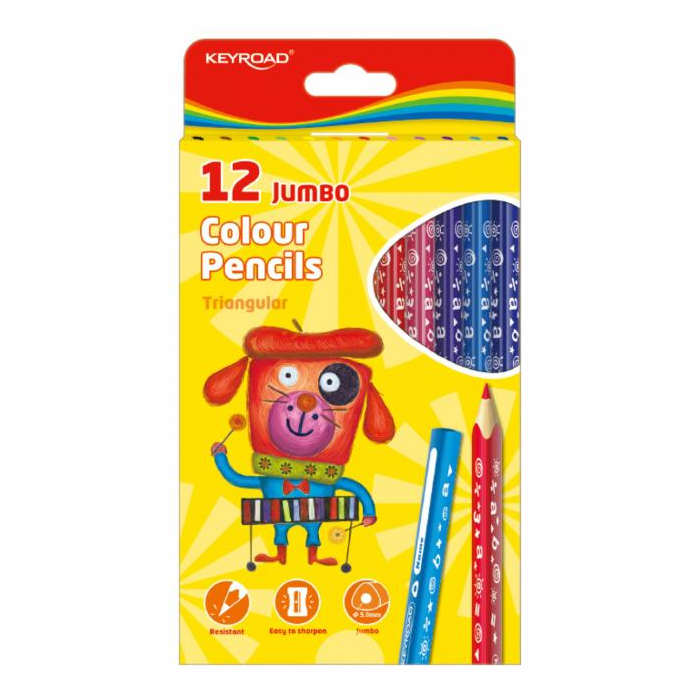 Farbičky KEYROAD Jumbo, trojhranné, 12 ks, mix farieb