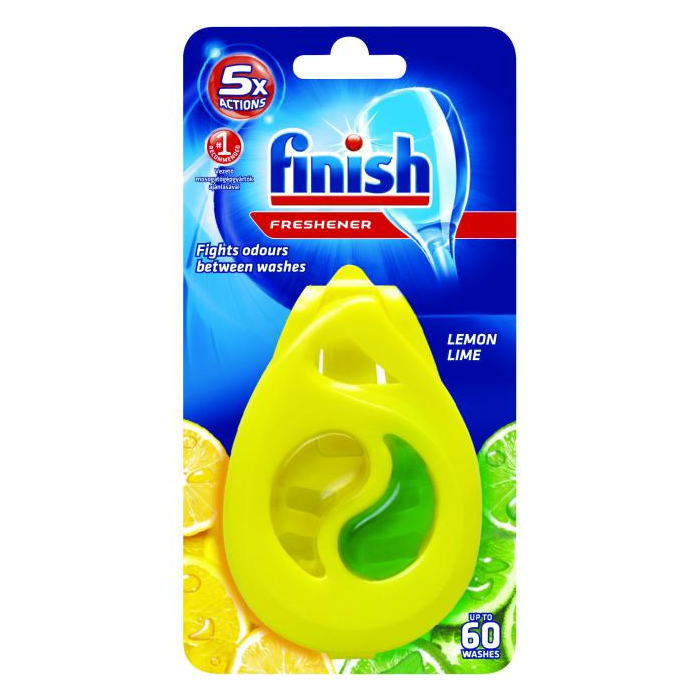 Dodajte Vašej umývačke riadu sviežou citrónovou vôňou! Špeciálne dvojité komory osviežovače umývačky Finish účinkujú súčasne a Vy tak môžete pri každom otvorení umývačky riadu cítiť namiesto nepríjemných zápachov len osviežujúcu arómu.