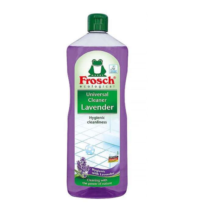 Univerzálny, ekologický čistič FROSCH sa stane skvelým pomocníkom pri upratovaní Vašej domácnosti. Zaručí hygienickú čistotu pre väčšinu umývateľných povrchov a podláh. Efektívne odstráni špinu a mastnotu bezo zvyškov. Eliminuje nepríjemné pachy a dodáva domovu sviežu levanduľovú vôňu.