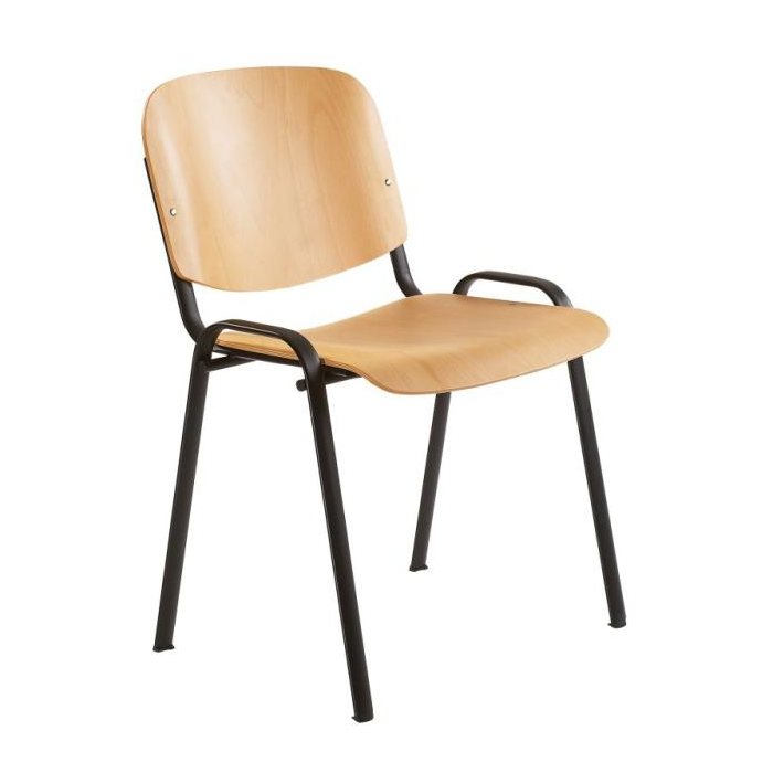 Jedálenská stolička s bukovou lakovanou preglejkou, oceľová podnož oválneho prierezu, čierny rám.