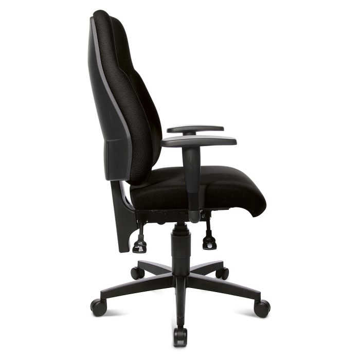 • opierka chrbta dodatočne tvarovaná na bokoch a v spodnej časti, plynule výškovo nastaviteľná
