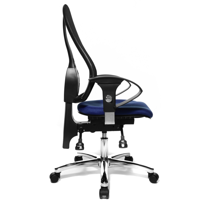 • obrysovo tvarované dizajnové operadlo s priedušným poťahom zo sieťoviny, plynule výškovo nastaviteľné