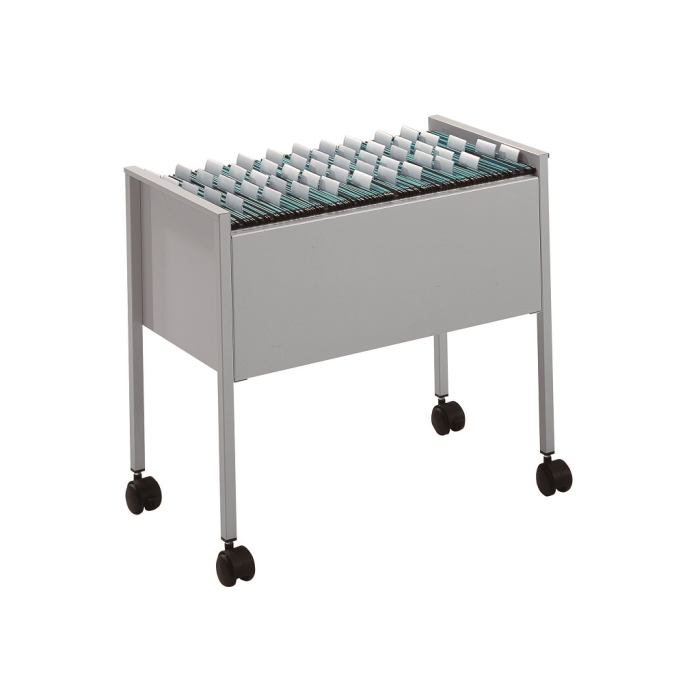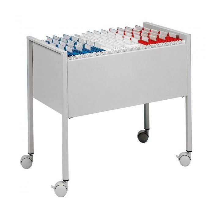 Robusná a ľahká jednoradová pojazdná kartotéka na závesné obaly. Kapacita 80 závesných obalov. Materiál oceľ s epoxidovým polyesterovým nástrekom odolným voči poškriabaniu. Dodávaná v rozloženom stave bez závesných obalov. Farba sivá.