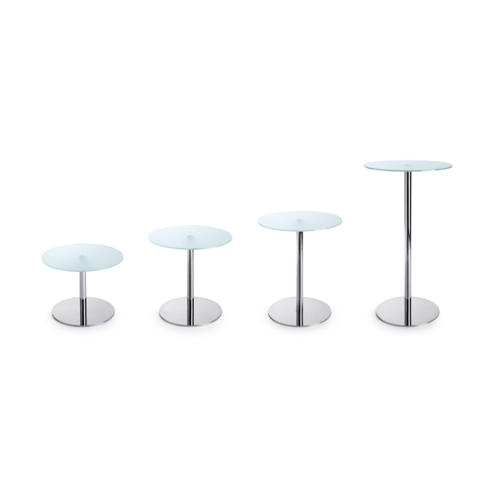Okrúhlý stolík SR 30, priemer 60 cm, výška 60 cm, tvrdené mliečne sklo, kovová podnož chróm