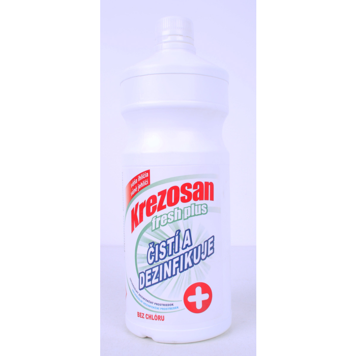 Vlastnosti: KREZOSAN fresh je tekutý čistiaci prostriedok s dezinfekčným účinkom. Slúži na čistenie a dezinfekciu verejných hygienických a zdravotníckych priestorov, na dezinfekciu a čistenie všetkých druhov podláh, chodieb, kúpeľní, sociálnych zariadení, a pod. Krezosan fresh plus má baktericídny účinok (doba pôsobenia 5 minút) a účinok proti kvasinkám (doba pôsobenia 15 minút).