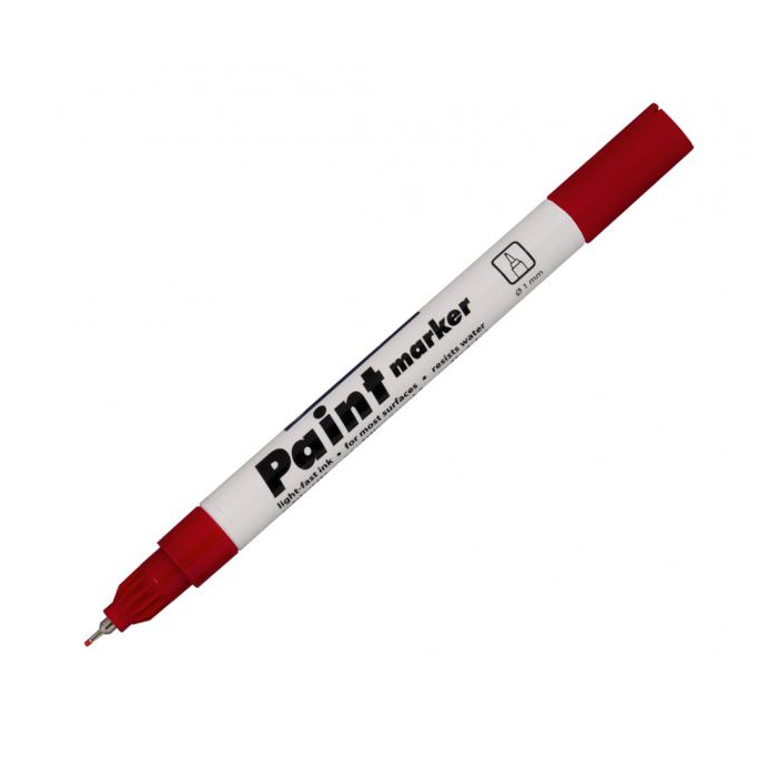 Lakový popisovač s plastovým hrotom v kovovej objímke píše na neporézne povrchy. Svetlostály atrament po zaschnutí odolá vode, poveternostným vplyvom aj oderu. Šírka stopy 0,7 mm. Väčšie balenie 10 ks v jednej farbe. Farba červená.