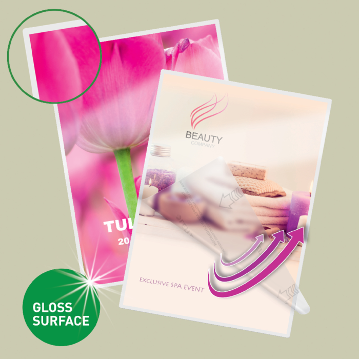 - Lesklý povrch obalov zvýrazňuje farebnosť dokumentu