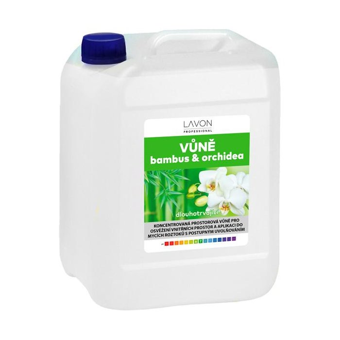 LAVON vôňa BAMBUS & ORCHIDEA 5 l je koncentrovaná priestorová vôňa s postupným uvoľňovaním. Vhodná aj na riedenie. Jednoducho aplikujete do ovzdušia pomocou rozprašovača alebo voľne nalejete do umývacích roztokov. Tento produkt je veľké balenie, ktoré je vhodné na použitie umývacích roztokov alebo ho použijete ako náhradné balenie pre vôňu 500 ml, ktorá má rozprašovač. Luxusná vôňa, ktorá sa len tak nerozplynie..