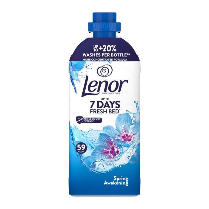 Aviváž Lenor Spring Awakening sa postará o sviežosť posteľnej bielizne až na 7 dní (zreteľná sviežosť Lenor až 1 týždeň). Jej technológia aktívnej ochrany proti zápachu chráni látky pred nepríjemnými pachmi počas nosenia. Na dosiahnutie dlhotrvajúcej sviežosti používajte ako doplnok k praciemu prostriedku zmäkčovač látok Lenor.