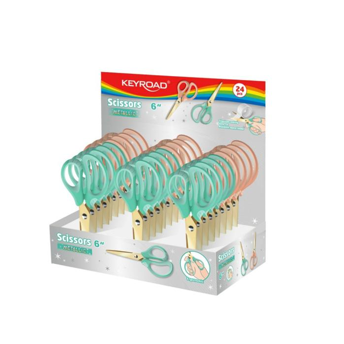 Nožnice kovovo-titánové KEYROAD, ergonomické, 15,5 cm, mix farieb, displej 24 ks