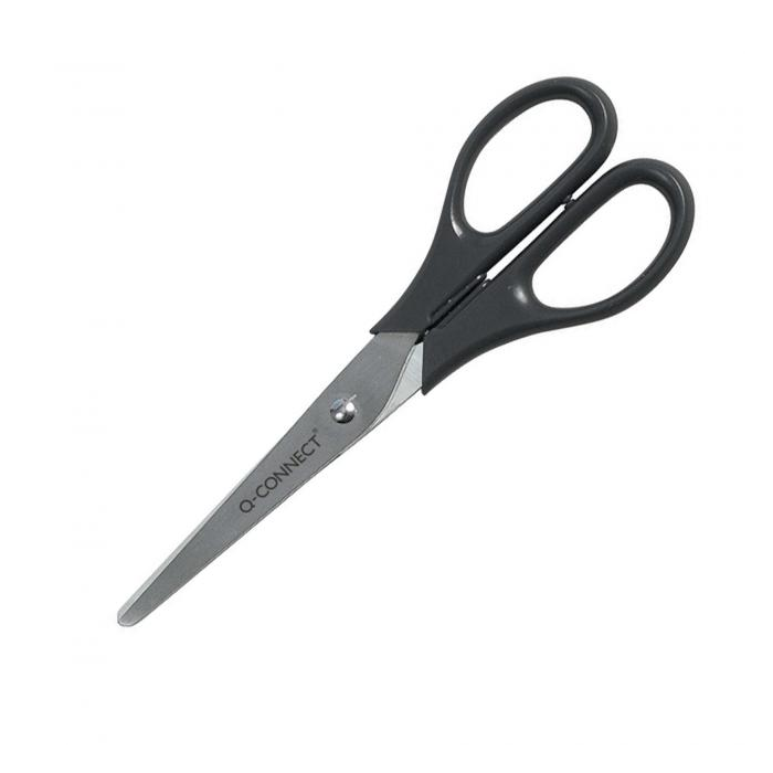 Univerzálne kancelárske nožnice na strihanie papiera, kartónu, lepenky, samolepiacej pásky a pod. so strihacou časťou z nehrdzavejúcej ocele. Farba čierna. Veľkosť: 17 cm.