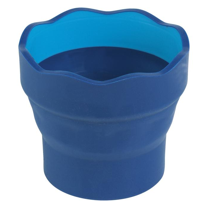 Vlnitý okraj je vhodný na umiestnenie štetca. Veľmi pevný. Vhodný pre deti od šesť rokov. · Praktický skladací mechanizmus pre lepšie skladovanie a prepravu · Jednoduché čistenie · Silný, protišmykový materiál · Vlnitý okraj pre odkladanie ceruziek či štetca · Farba: modrá · Pohár nie je vhodný na rozpúšťadlá (terpentín)