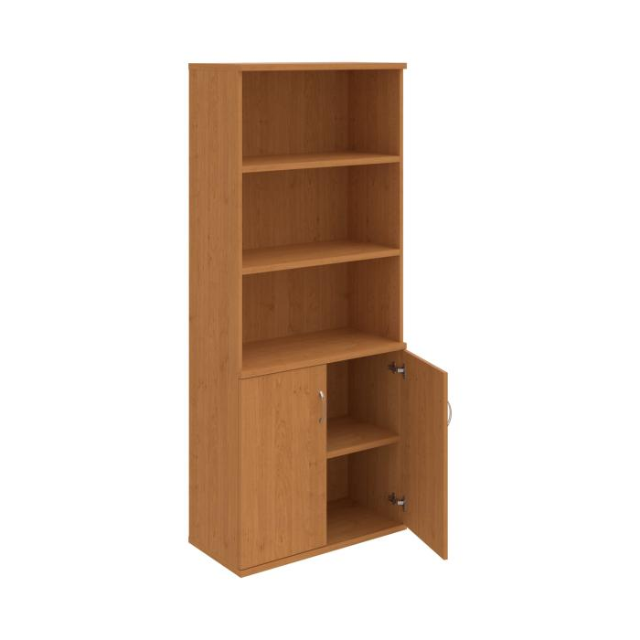 Kombinovaná skriňa - dvere/nika.Kancelárske skrine STRONG majú robustnú konštrukciu a vyššiu nosnosť políc ako bežné kancelárske skrine.V ponuke sú skriňové moduly s výškou 185 cm, 111 cm alebo 74 cm a šírky 80 cm alebo 40 cm.Hĺbka všetkých modelov skriňového radu STRONG je 40 cm.Chrbát, vyrobený z 8 mm hrubých dosák, je obojstranne pohľadový, takže skrine môžete použiť ako priestorový deliaci prvok. Hrúbka samotných políc je 25 mm, čo znamená nosnosť 80 kg na 1 policu.Korpusy, dvierka a police skríň sú olepené odolnou 2mm ABS hranou, ktorá garantuje dostatočnú ochranu proti poškodeniu.