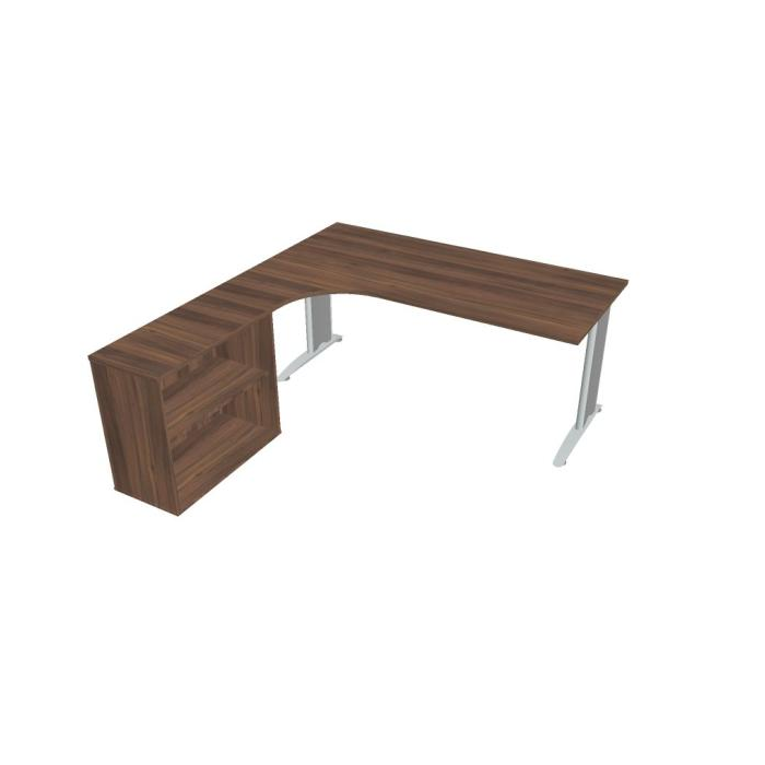 Pracovný stôl Flex, ergo, pravý, 180x75,5x200,0 (40x80) cm, orech/kov