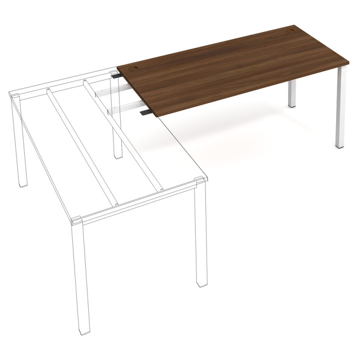 Reťaziaci pracovný stôl rovný. Doska stola z kvalitného lamina. Pevná kovová konštrukcia podnožia zo štvorcových profilov 50 x 50 mm je tvorená kompaktnými pármi nôh, ktoré sú spojené priečnikmi. Výškovo nastaviteľná rektifikácia zaisťuje možnosť dorovnania prípadnej nerovnosti podlahy až o 1,5 cm. Stolová pracovná doska z LTD má hrúbku 25 mm a je zakončená 2mm hranou ABS, ktorá ju chráni pred poškodením. Samozrejmosťou sú káblové priechodky a systém pre zavesenie káblov pod stolovou doskou. Možnosť objednania bieleho či sivého prevedenia podnožia. Stolové doplnky, kontajnery a skrine vyberajte z ponuky kancelárskeho nábytku Hobis. Aby sa zásielka dostala v poriadku až do Vašej kancelárie, dodávame stoly demontované v niekoľkých samostatných a bezpečne zabalených škatuliach. Súčasťou každého balenia je tiež prehľadný návod. Na stoly UNI sa vzťahuje záruka 5 rokov. Farebnosť je ilustratívna.