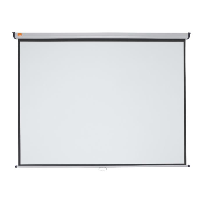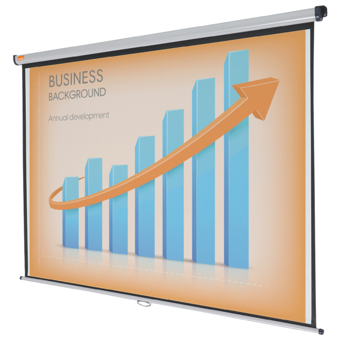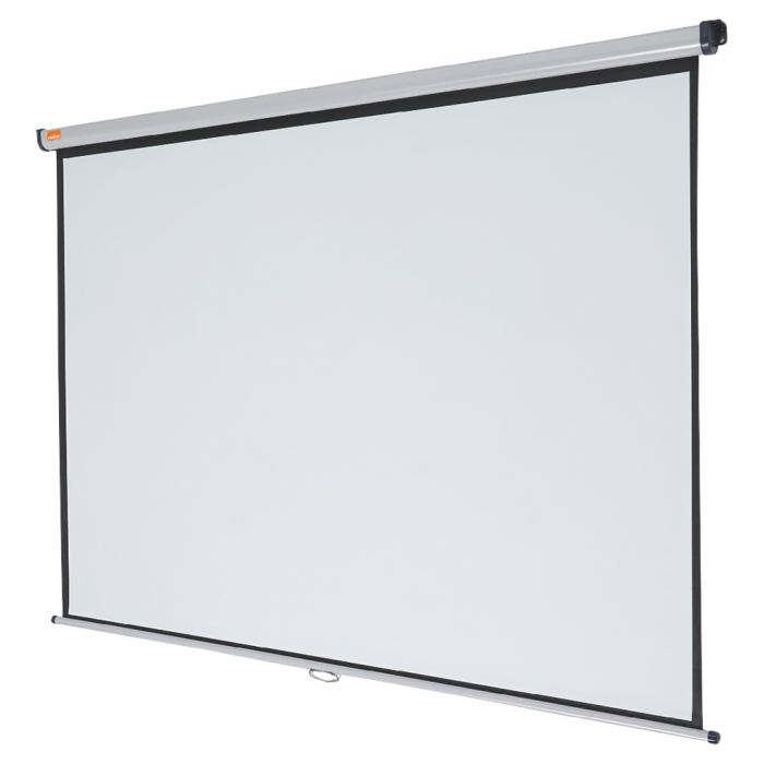 Žiarivý matne biely povrch plátna zaručuje ostrý, podrobný obraz, ktorý zreteľne uvidia všetci diváci. Dá sa ľahko zasunúť do puzdra, aby bolo chránené pred poškodením, alebo uložené, keď nie je používané. Doplnkové držiaky umožňujú inštalovať plátno pred popisovaciu tabuľu alebo ho skloniť smerom k divákom. 1750 × 1090 mm.