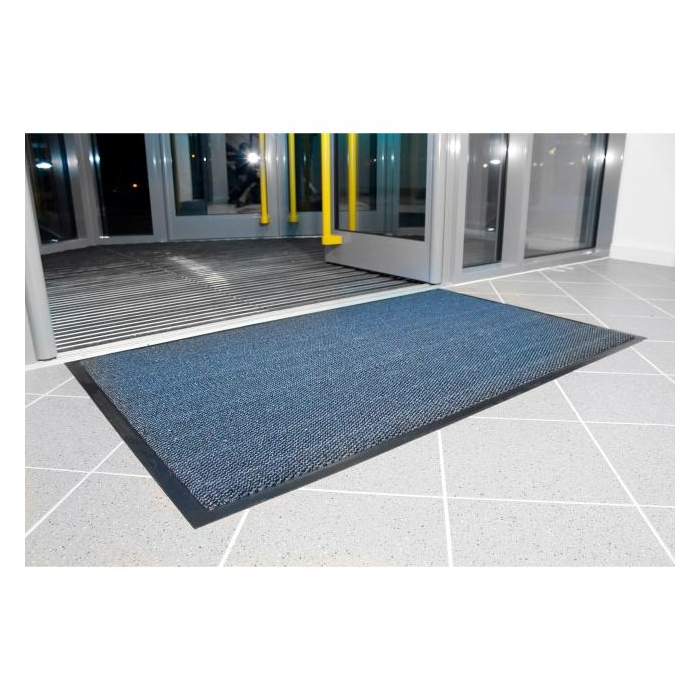 Ekonomická a účinná stieracia rohož vhodná do vstupných priestorov, hál a chodieb. Rubová strana z PVC s úpravou proti pošmyknutiu a znečisteniu, materiál vlasu je 100 % polypropylén. Výška 7 mm. Rozmery 90 x 120 cm. Farba čierna/modrá.