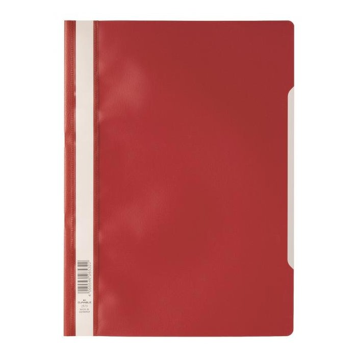 Štandardný polypropylénový rýchloviazač s priehľadnou prednou stranou a nasúvacím popisným pásikom. Formát A4. Balenie 50 ks v jednej farbe. V kombinácii so zakladacím pásikom obj. kód DU2996 02 je možné archivovať rýchloviazač v zakladači. Farba: červená