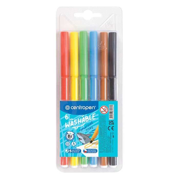 Popisovač vyrobený z PP s ventilačným bezpečnostným uzáverom a vláknovým hrotom odolným voči zatlačeniu. Šírka stopy 1,8 mm. Dodávaný v sade 6 farieb.