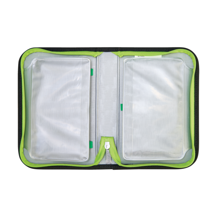 Priestranné hlavné vrecko s oddeleným priečinkom na knihy.