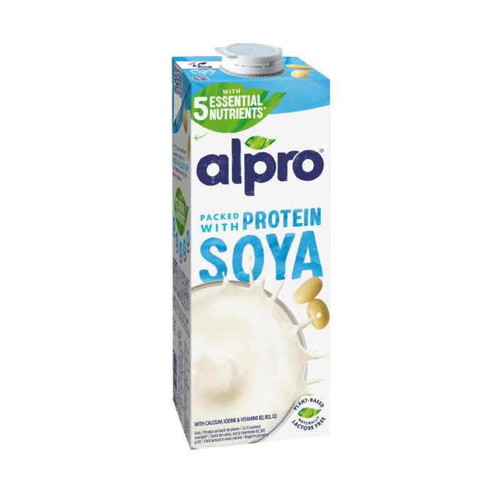 Sójová zložka [pitná voda, lúpané sójové bôby [8%]], Cukor, Regulátory kyslosti [fosforečnany draselné], Uhličitan vápenatý, Aróma, Morská soľ, Stabilizátor [guma gellan], Vitamíny [B2, B12, D2]. Bezgluténový. Prirodzene bez laktózy.