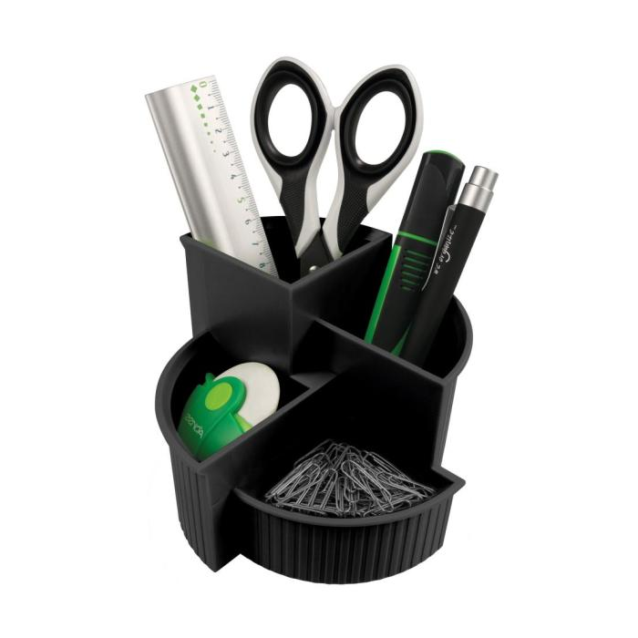 Stojan so 4 sekciami na písacie potreby a ďalšie drobnosti v dizajne rady Linear. Priemer 14 cm, výška 10 cm.