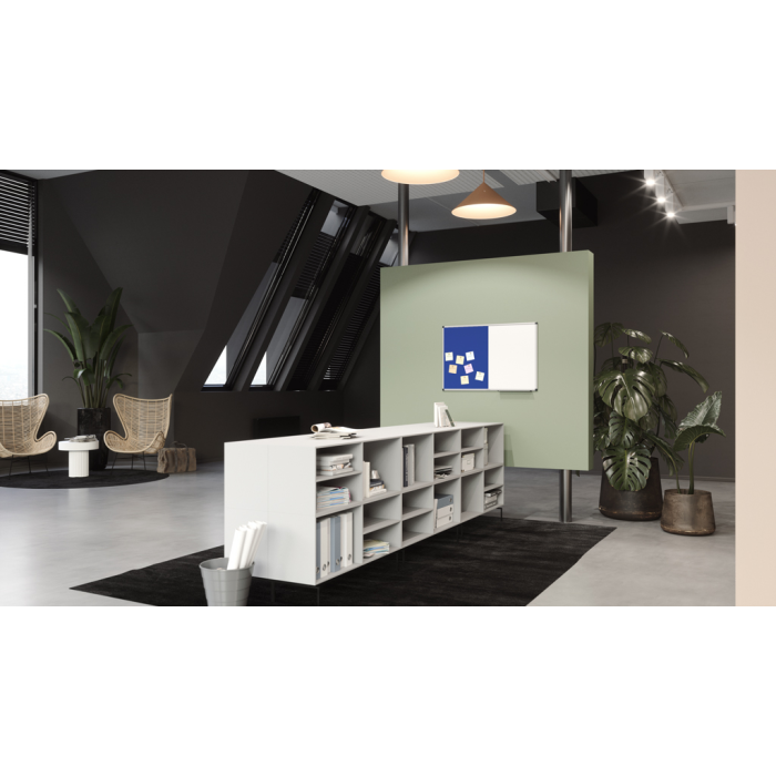 Priestorovo úsporná dvojfunkčná doska na písanie a pripínanie. Hladké písanie a výkon suchého vymazávania. Jednoduché pripevnenie poznámok, náčrtov a fotografií pomocou magnetov a špendlíkov. Jednoduchá skrytá montáž na stenu. 5 ročná záruka na dokonalú popisovateľnosť a stierateľnosť povrchu dosky pri použití v kombinácii s príslušenstvom Legamaster. Tento produkt je vyrobený z materiálu z dobre obhospodarovaných lesov s certifikátom FSC® a iných kontrolovaných zdrojov (FSC C158462). Funkčná tabuľa a nástenná tabuľa na príležitostné použitie v kancelárii alebo domácej kancelárii. Jedna polovica: Magnetická lakovaná oceľová tabuľa vhodná na popisovanie za sucha stierateľnými popisovačmi na tabuľu. Druhá polovica: Nástenka s plsteným povrchom. Hliníkový rám so sivými plastovými rohovými krytmi (Pantone 433C). Možno namontovať horizontálne alebo vertikálne. Zásobník na popisovace (30 cm) s koncovými krytmi, montážna sada a montážny návod sú súčasťou balenia.