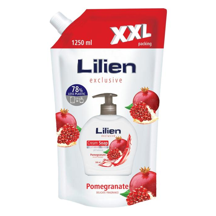 Jemné tekuté mydlo s výťažkom z granátového jablka v praktickom vrecúšku.