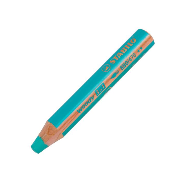 STABILO Woody 3 v 1 je multifunkčná farbička, vodovka a voskovka v jednom, ktorá vie kresliť na papier, na tmavý podklad, kartón, sklo, kov, drevo alebo trebárs aj na gumáky. Ozdobiť si drevený rámik, okno, chlebník alebo plechovku na ceruzky je hračka. Deti ju milujú a rodičia môžu zostať v pokoji, pretože farbu možno z ručičiek aj z hladkého povrchu dobre zmyť vodou s mydlom alebo saponátom. Tuha obsahuje osemkrát viac farby než bežná farbička, nemožno ju zlomiť a hodí sa na extra dllllllllhé kreslenie a na veľké umelecké diela: vďaka hrubej tuhe je možné všetko rýchlo vyfarbiť. Vďaka svojmu tvaru padne woody výborne do detskej ručičky. K dostaniu je 18 atraktívnych farieb, vrátane zlatej a striebornej. Zakúpiť sa dá v baleniach alebo jednotlivo. XXL tuha je uložená v tele, ktoré je vyrobené z dreva certifikovaného PEFC® (PEFC/04-31-1728) a je teda šetrná k životnému prostrediu.