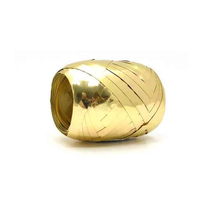 Dekoračná stuha v zlatej metalickej farbe. Vhodná na viazanie a balenie darčekov alebo viazanie kvetov. Pretiahnutím stuhy cez nožnice môžete vytvoriť nádhené lokne a stuhu rôzne zakrútiť. Vďaka tomu bude váš darček nádherne naaranžovaný. Uvedená cena je za 1 ks.