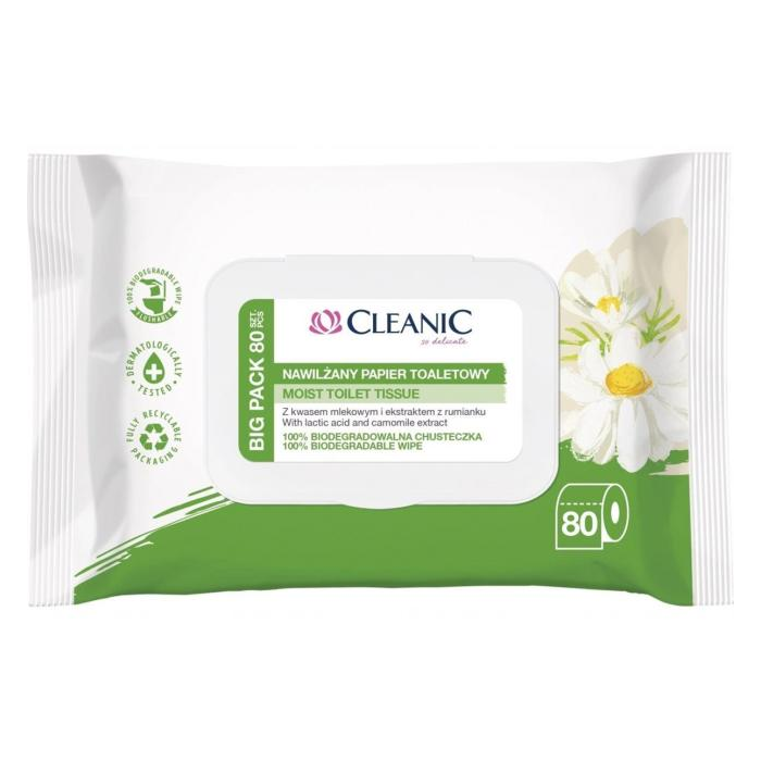 CLEANIC VLHČENÝ TOALETNÝ PAPIER CHAMOMILE 80 ks je ideálnym riešením pre každodennú intímnu hygienu, poskytujúc jemnú starostlivosť a sviežosť.Obohatený o extrakt z harmančeka a kyselinu mliečnu, účinne čistí a upokojuje citlivé oblasti, pričom zachováva prirodzené pH pokožky.Praktické balenie: BIG PACK balenie obsahuje 80 ks obrúskov, ktoré sú vhodné na použitie doma aj na cestách.